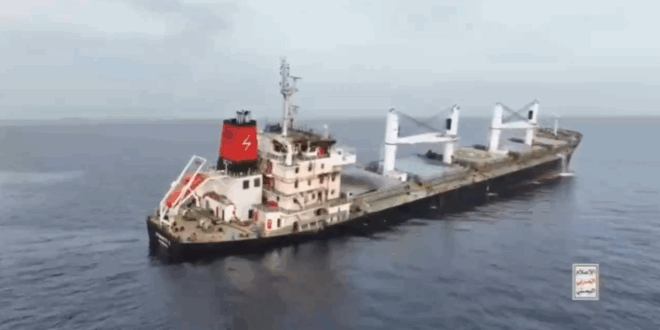 لحظة تحذير القوات المسلحة اليمنية للسفينة (ETERNITY C)، قبيل استهدافها وإغراقها؛ إسناداً لغزة، بعد انتهاكها القرار اليمني بحظر توجه السفن إلى ميناء أم الرشراش في فلسطين المحتلة.