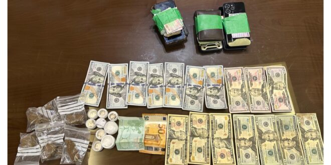 وبتفتيشهم والمركبة، عُثر على أربع علب بلاستيكية تحتوي على مواد مخدّرة، وجاهزة للترويج، إضافة إلى مبالغ مالية وهواتف خلوية.