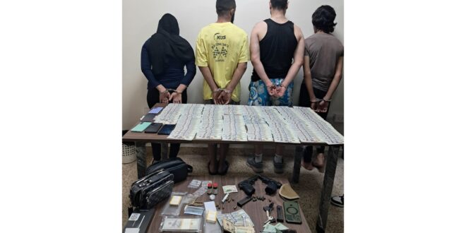 في محلة المكلس، حيث ضبط بحوزتهما مسدسان حربيان ومخدّرات وأموال مزيّفة، وقد تبيّن من خلال التحقيق أن دورهما كان يتمثل في استلام الأموال المزيّفة، ثم لقاء الضحية لاستلام الأجهزة الإلكترونية مقابل تلك الأموال.