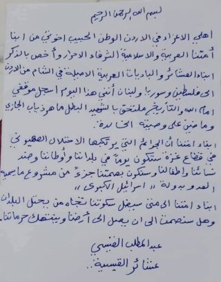 وصية الشهيد الأردني عبد المطلب القيسي الذي نفذ عملية معبر الكرامة:
