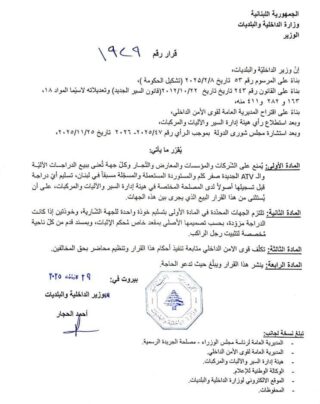 قرار جديد لوزير الداخلية بشأن بيع الدراجات النارية في لبنان يمنع التجار من تسليم اي دراجة للزبون قبل تسجيلها أصولا لدى المصلحة المختصة